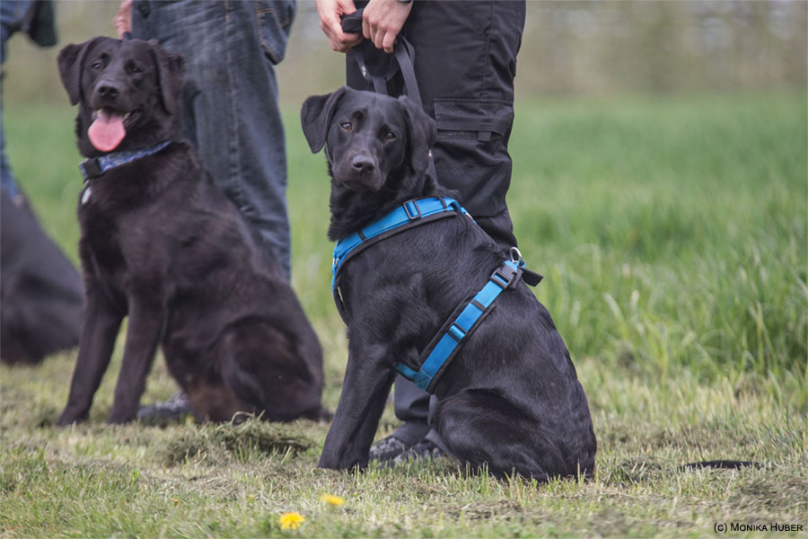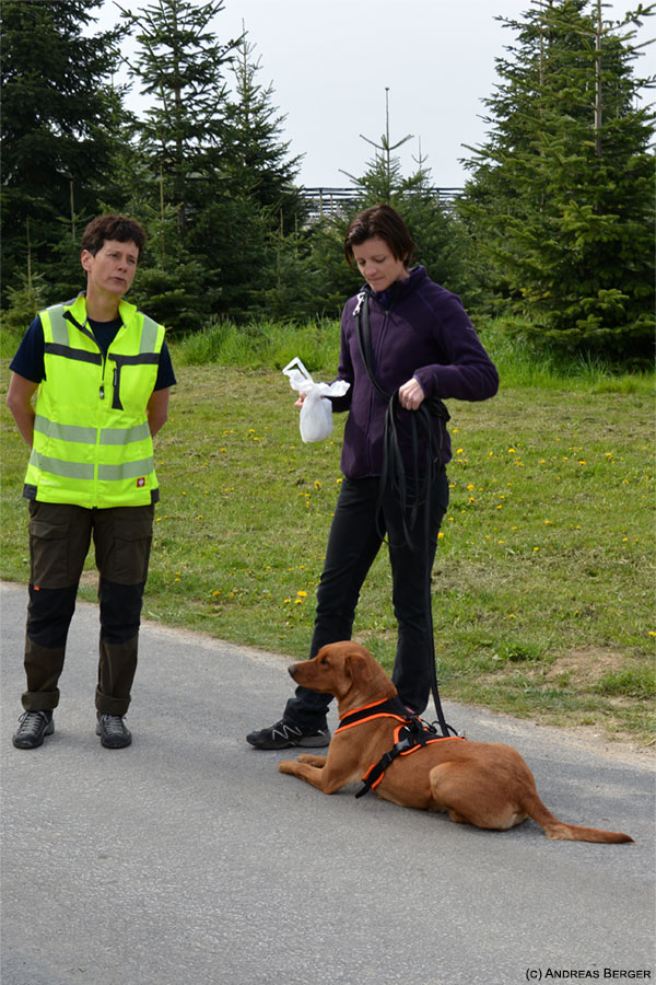 Barbara bildet Lootah (D-Wurf) für das Mantrailing aus und sie hat uns mit ihr ein kurzes Trail gezeigt und Forrest (A-Wurf) und Edison (E-Wurf) konnten wir bei ihrer Ausbildung sehen - eine vermisste Person suchen und anzeigen.