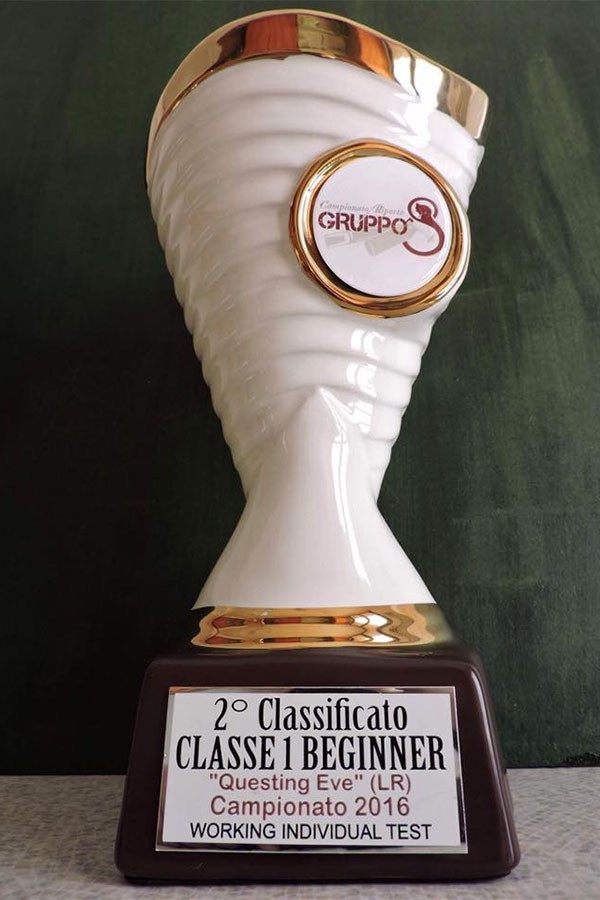 Eve (E-Cucciolata). Eve non è il primo cane di Chiara ma è il primo cane con cui Chiara è entrata nella competizione sportiva. Chiara ha tanta voglia di imparare, di migliorare e cerca sempre di capire il cane. Nel 2016 Chiara ha fatto con Eve un bellissimo percorso nella disciplina del riporto e hanno concluso in bellezza il 2016 raggiungendo il 2° posto nel Campionato Working Test 2016 del Gruppo 8 Passione Retriever. In dicembre hanno partecipato anche alla prova finale in cui entrano i primi 10 cani qualificati e sono state chiamate tra i 4 cani migliori.